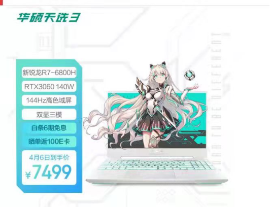 天選系列再出新版本!全新華碩天選3銳龍版4月6日迎來開售,代表著“AMD?YES!”的銳龍7?6800H標壓處理器加上140W滿功耗的NVIDIA?GeForce?RTX?3060移動版顯卡已經讓不少玩家大呼過癮,而電競必備144Hz高刷屏幕更是讓這款產品成為最近正準備入手游戲本的朋友們所必須著重考慮的產品,7499的到手價格真的讓人很難不心動!趕快來華碩京東自營官方旗艦店搶購吧!