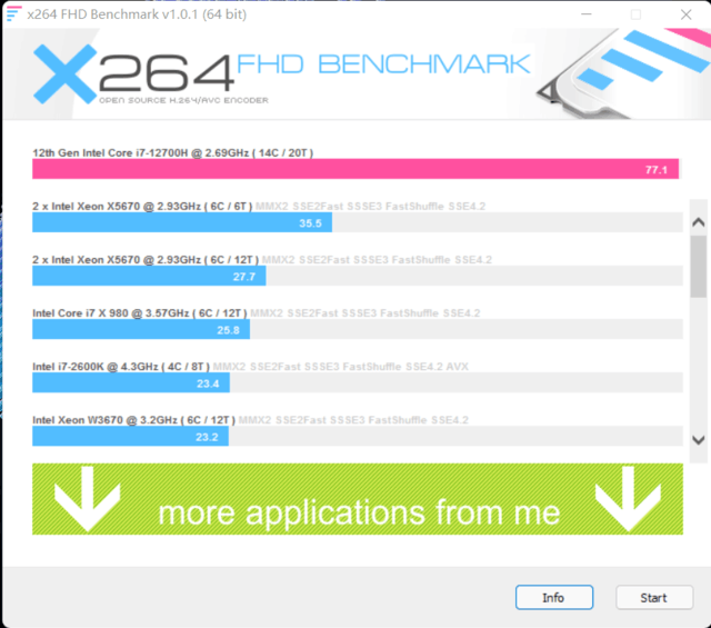 X264/X265 FHD Benchmark視頻編碼測試得分