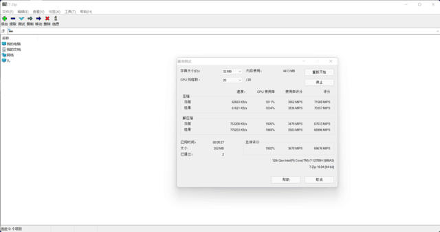 為了能夠通過實際應用解鎖OMEN暗影精靈8Plus的性能表現,在測試中,選用了最常用的WinRAR對處理器的解壓縮能力進行測試。基準測試結果顯示,解壓縮的速度為33094KB/秒,總體評分69676 MIPS。在多線程模式下,解壓速度還是相當快的。