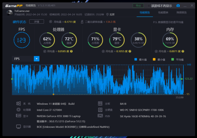 在測試之前,我們將這款機器的顯卡驅動升級為最新的512.15版本,惠普游戲控制中心軟件版本為v.1101.2203.4.0,BIOS版本為AMIF.05。而為了探究其性能表現,測試時全程開啟狂暴模式和獨顯直連模式。同時,測試期間全程連接電源適配器,并確保電池滿電。