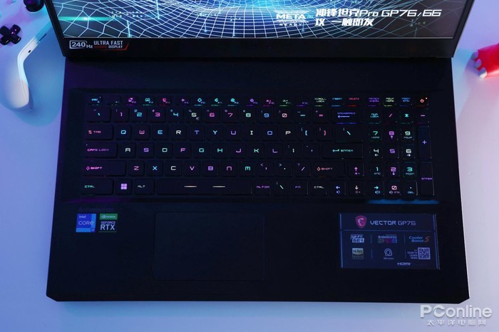 屏幕方面,微星沖鋒坦克Pro GP76同樣值得稱贊,我們手上的這款搭載一塊17.3英寸,三面窄邊框設(shè)計(jì)的電競(jìng)屏。顯示分辨率為2560×1440,同時(shí)支持高達(dá)240Hz超高刷新率,對(duì)高幀率電競(jìng)游戲的支持極好。