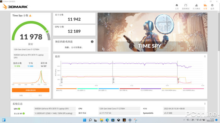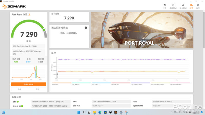 另外可以告訴大家,這款i7-12700H+滿血版RTX 3070Ti配置的微星沖鋒坦克Pro GP76和此前我們測(cè)試過(guò)的一款搭載i9-12900H + RTX 3080Ti(115W)在3DMark上的跑分基本相同,所以對(duì)于熱愛(ài)游戲的玩家來(lái)說(shuō)滿血版萬(wàn)歲!