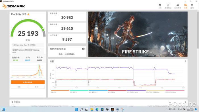 通過(guò)3DMark的Fire Strike模式、Time Spy模式以及Port Royal模式來(lái)看,其總分分別為Fire Strike總分25193分,Time Spy總分11978分,Port Royal總分7290分。這都彰顯著這塊滿血版RTX3070Ti顯卡的性能強(qiáng)大。