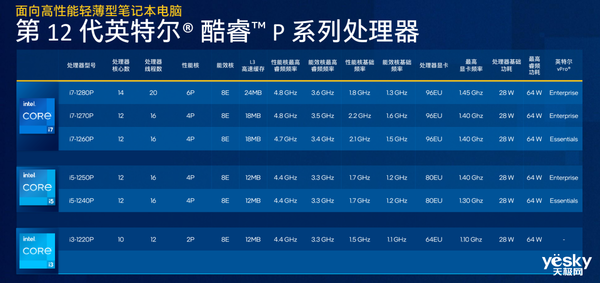 p系列處理器可以說是英特爾依托高性能混合架構開發的“新賽道”。它被稱為“準標準電壓”處理器,性能優于低功耗的U系列。可以說是兼顧性能和輕薄的新方案。