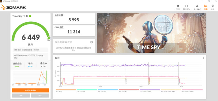從結果來看,AMD銳龍7 6800H處理器獲得了65FPS的成績,而i5-12500H獲得了72FPS,仍然優于前者。