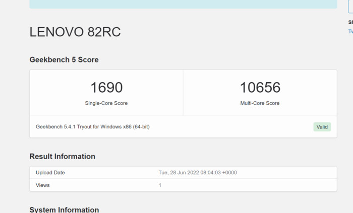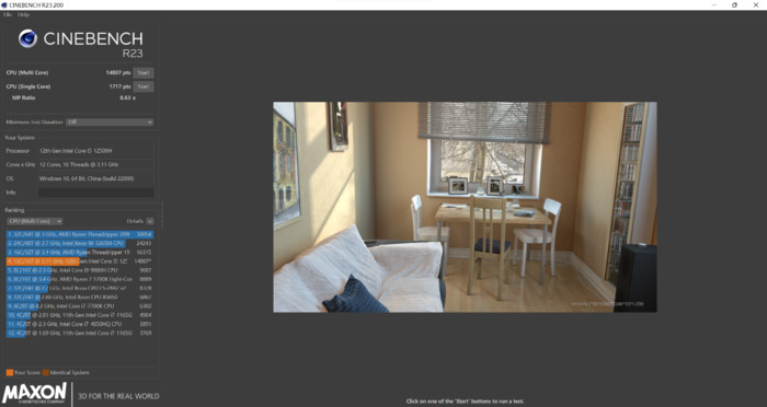 采用英特爾酷睿i5-12500H處理器的Saver Y7000P單線程得分1690,多線程得分10656。