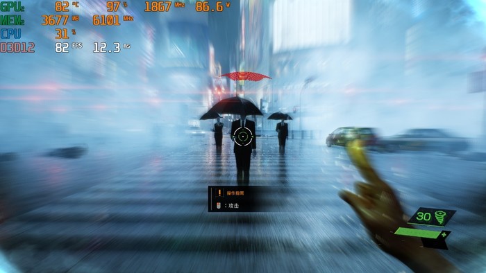 恐怕有人會說,高10-20%的幀數有什么意義?讓我們來看看賽博朋克2077。i5-12500H的加持,可謂是游戲體驗的一次質變。