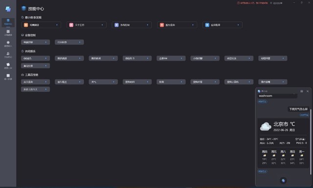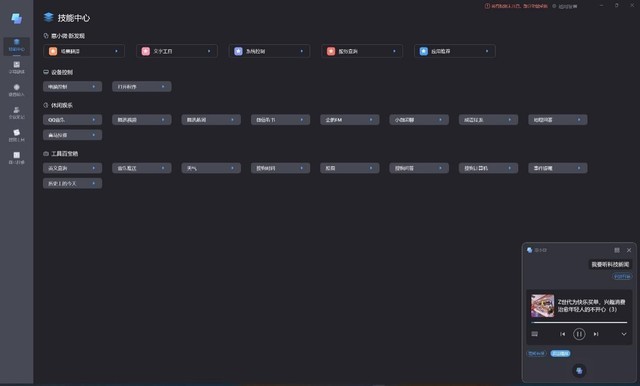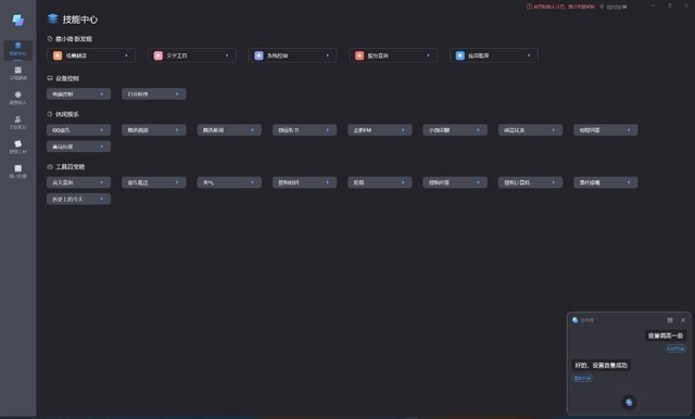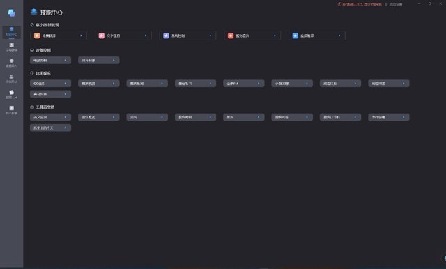 首先是技能中心,這部分是惠小微的核心功能,分為設備部分,設備控制、休閑娛樂、工具。