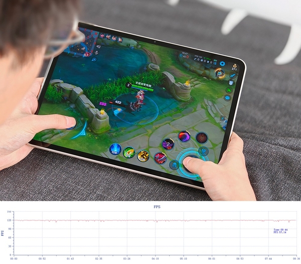 ??天極網實測,OPPO?Pad?2安兔兔跑分99.6萬,魯大師系統體驗226.4,旗艦級實力沒有被閹割。游戲上手測試跑國民游戲《王者榮耀》:7:5的屏幕比例上下視野更寬,左右視野略有變窄,實測平均幀率為119.3fps,上下波動不超過1.2,波動幅度約為1%,全程游戲下來很穩定。4局游戲打完機身不燙手,僅機身左上角有輕微發熱。