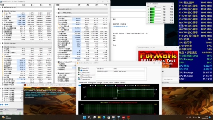 ??在CPU單烤測試中,將星X15的酷睿i7-12650H哄好可以穩定在70W左右,溫度約90℃;GPU單烤測試中,RTX?3050達到了95W滿功耗,溫度在85℃左右;雙烤測試中,CPU+GPU整體功耗達到了110W。