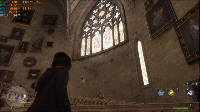 ??還是以《霍格沃茨之遺》為例,在高畫質下可以獲得60幀左右的體驗,只不過在進出城堡、攀爬樓梯時會有些卡頓,如果是“旅游型”玩法,體驗也還不錯。一旦開啟光追,不借助DLSS,就會變成魔法世界的PPT。